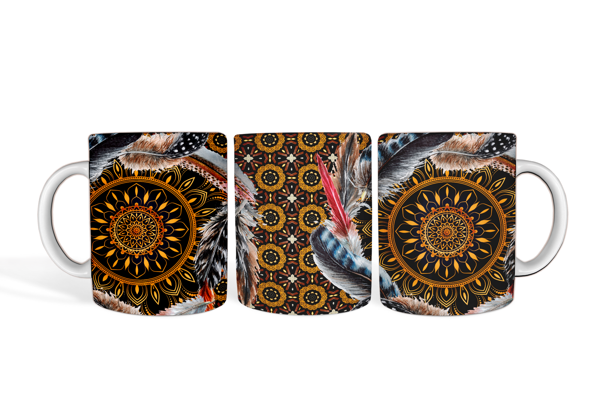 Black Gold Feather Mandala Mug
