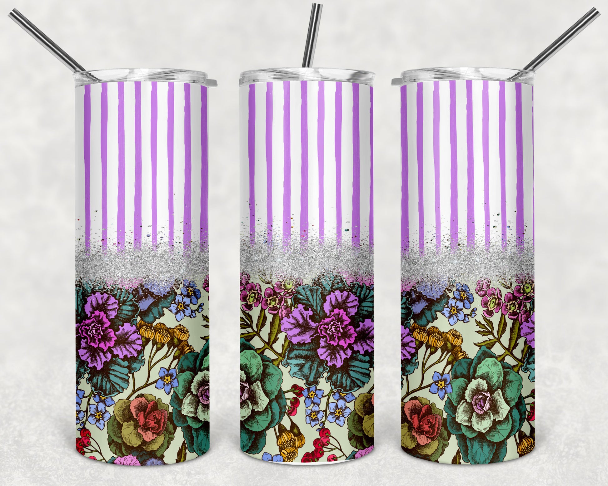 Mauve Floral Stripes Skinny Tumbler 20oz